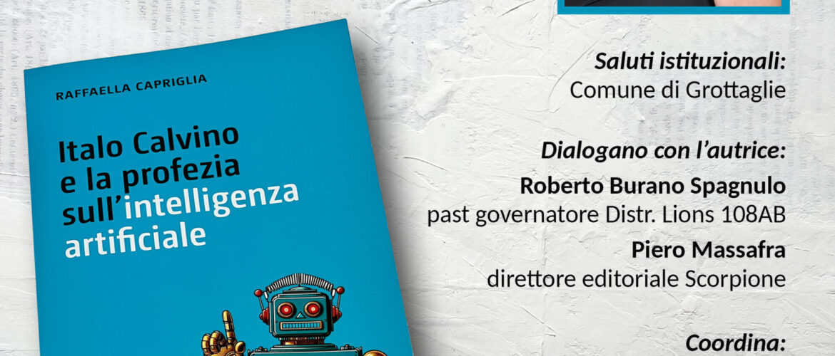 È possibile che Italo Calvino, oltre cinquant’anni fa, avesse predetto l’Intelligenza Artificiale? È la domanda da cui è nato il libro “Italo Calvino e la profezia sull’intelligenza artificiale”, di Raffaella Capriglia, edito nell’agosto 2024 da Scorpione editrice. Il saggio scritto dalla giornalista, studiosa in ambito letterario, è una ricerca letteraria e linguistica, con riferimenti filosofici e cenni al giornalismo e alla comunicazione. È un omaggio allo scrittore e saggista Italo Calvino, di cui si è recentemente celebrato il centenario dalla nascita, ma anche un tentativo di unire all’indagine letteraria l’esperienza nel mondo della comunicazione, che si misura oggi con una nuova sfida: il confronto con le novità apportate dai sistemi di intelligenza artificiale. Di recente pubblicazione, in distribuzione nelle librerie e sulle librerie e piattaforme on line, Italo Calvino e la profezia sull’intelligenza artificiale sarà presentato il 30 agosto prossimo, dalle ore 19.30, nell’atrio del Castello episcopio di Grottaglie (Taranto), ingresso libero. Dopo gli interventi istituzionali dell’amministrazione comunale guidata dal sindaco Ciro D’Alò (previsti i saluti del vicesindaco Vincenzo Quaranta e dell’assessore alla cultura Antonio Vinci), dialogheranno con l’autrice Roberto Burano Spagnulo, past governatore Distretto Lions 108 AB e Piero Massafra, direttore editoriale di Scorpione editrice. Introdurrà e coordinerà la serata la giornalista Lilli D’Amicis, direttore di Oraquadra. La presentazione è patrocinata dal Comune di Grottaglie. Il libro “Italo Calvino e la profezia sull’intelligenza artificiale” di Raffaella Capriglia, Scorpione editrice, è disponibile nelle principali librerie e sulle librerie e piattaforme on line.