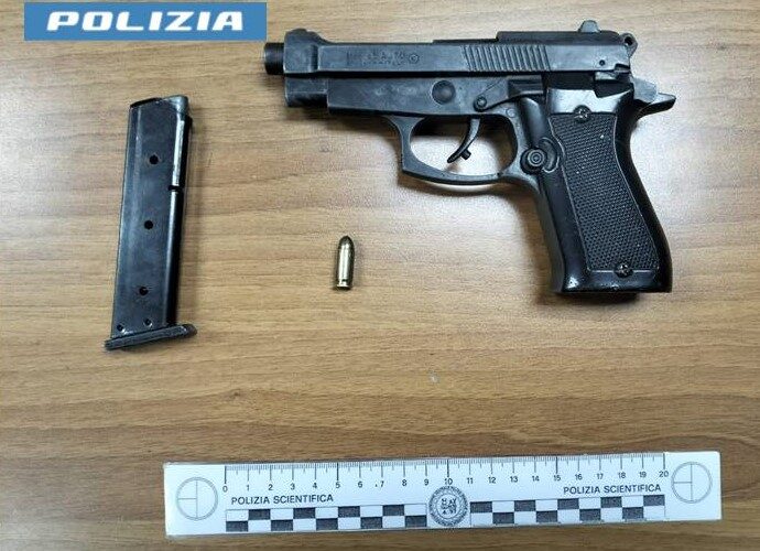 Durante la colluttazione, dalla cintola del giovane è caduta a terra una pistola con “cane armato”, all’apparenza pronta a fare fuoco, modificata e fornita di caricatore in cui era presente una cartuccia. Successivamente, la pistola si sarebbe rivelata un’arma giocattolo, opportunamente modificata per essere potenzialmente offensiva.