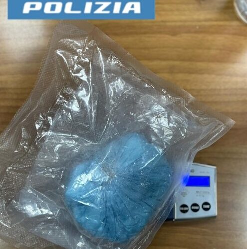 Dalla perquisizione personale, nascosto nella cinta dei pantaloni, è stato rinvenuto un involucro in cellophane trasparente sottovuoto contenente 220 grammi di cocaina.
