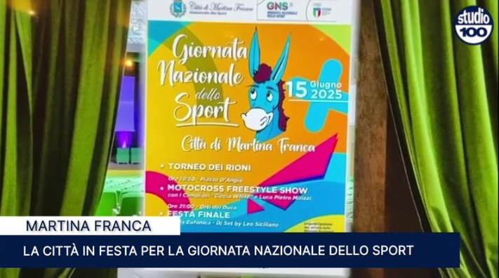 Anche Martina Franca celebra la Giornata Nazionale dello Sport: domenica 15 giugno, dalle 16:30, il centro cittadino si anima con esibizioni, tornei e attività per tutte le età. Tra gli ospiti, il campione Ciccio White con il suo Motocross Freestyle Show.