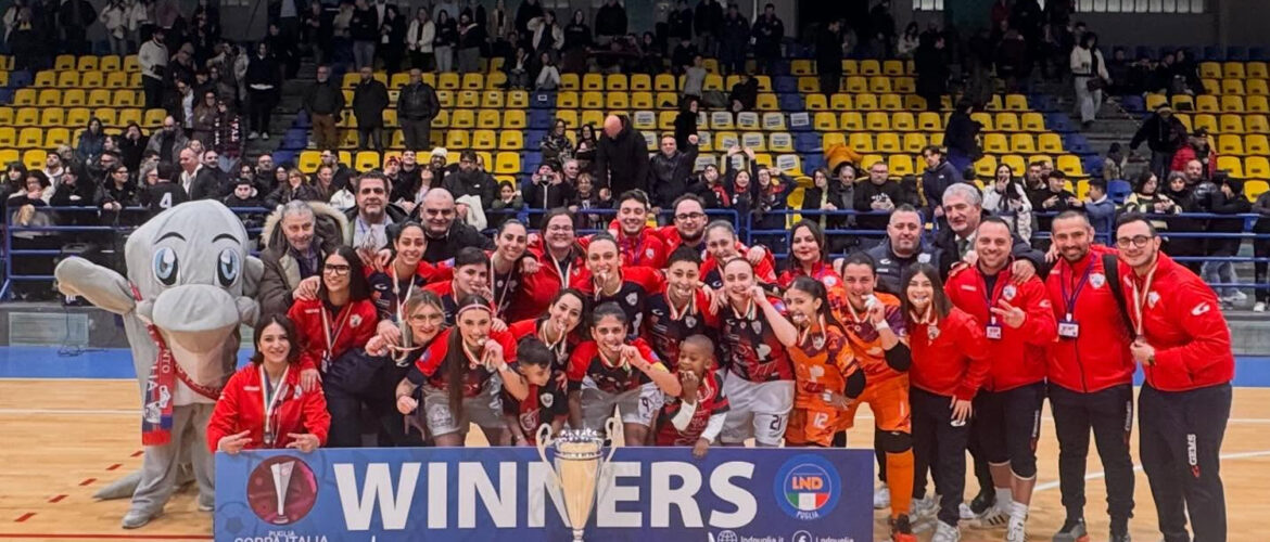 L’Atletico Città di Taranto C5 conquista la Coppa Italia Puglia di futsal femminile, superando con autorità la Polimnia Calcio per 5-1 nella finale disputata al “PalaFiom”.