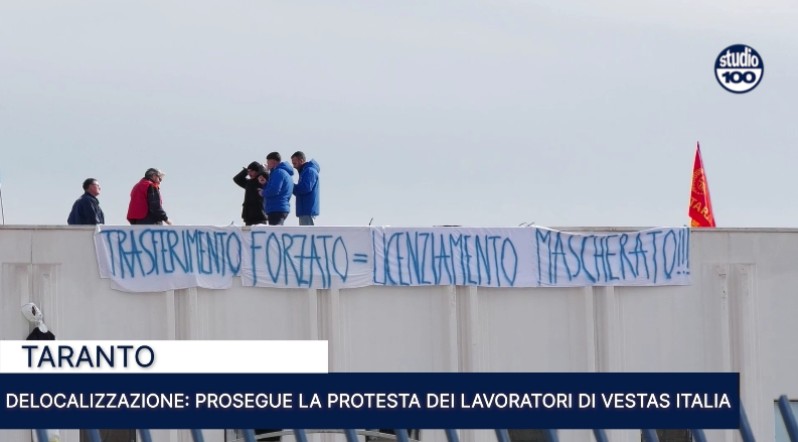 I lavoratori di Vestas Italia sul tetto dell’azienda. Tredicesimo giorno di protesta per la delocalizzazione da Taranto a Melfi a partire dal 1 marzo. “I 32 lavoratori vengano spostati nella divisione Vestas Blade” è la richiesta delle organizzazioni sindacali.