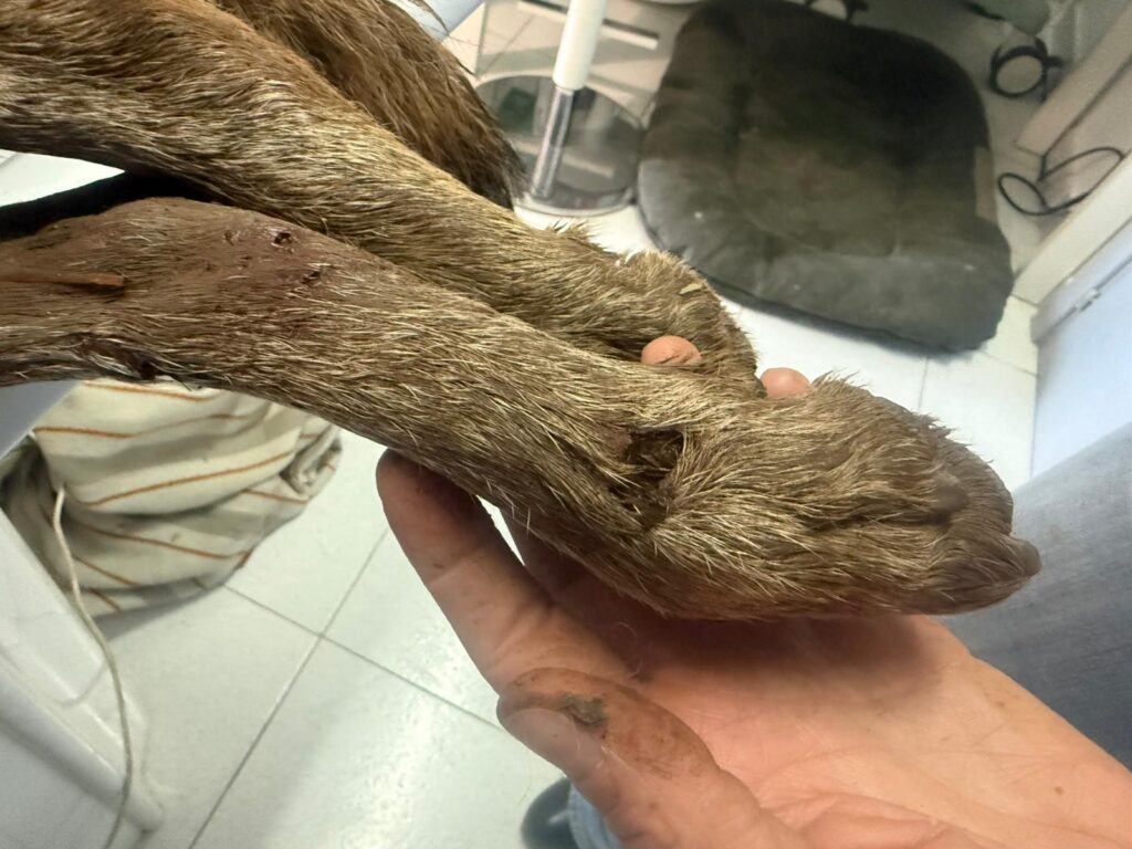 Il cane è stato successivamente ritrovato morto, con fori presenti sulle zampe e sul corpo, compatibili presumibilmente con colpi d’arma da fuoco. Non si esclude, allo stato attuale, che l’animale possa essere stato anche morso da altri animali. La proprietaria ha riferito che, a seguito di un grave incidente subito da cucciolo, il cane aveva riportato una menomazione al muso che gli impediva di mordere o di difendersi.