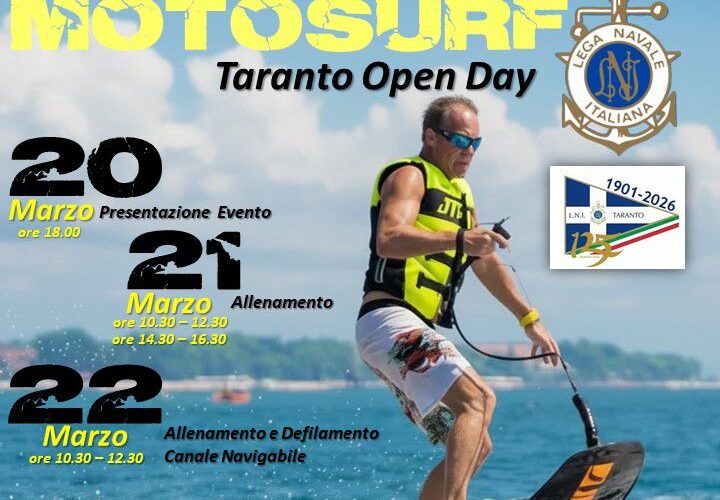 L’Associazione Sportiva Dilettantistica Surf Boom, iscritta alla FIM – Federazione Italiana Motonautica, organizza a Taranto un evento dedicato al Motosurf, con due giornate di sessioni di allenamento nello specchio acqueo antistante la Rotonda del Lungomare. Le attività si svolgeranno con il supporto della Lega Navale Italiana – sezione di Taranto, partner dell’iniziativa.