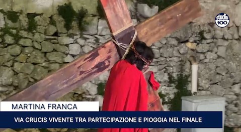 A Martina Franca la Via Crucis vivente, tra fede, tradizione e coinvolgimento della comunità. La rappresentazione si è conclusa in anticipo per la pioggia nel finale.